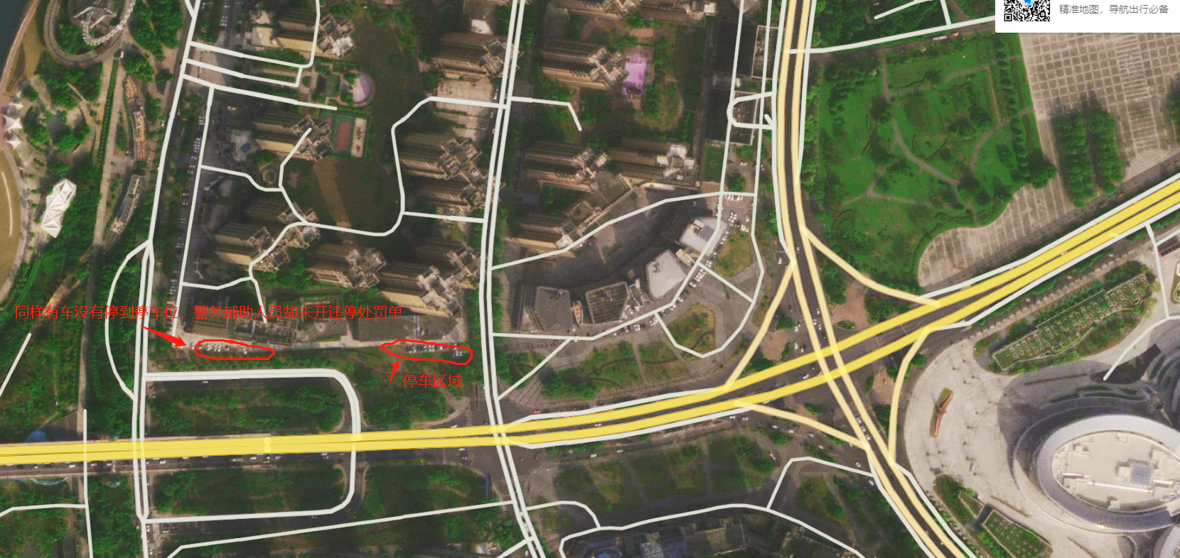2.同样小区楼宇外,另一边停车区域,有车辆没有停在停车位,警务辅助人员却不允处理。