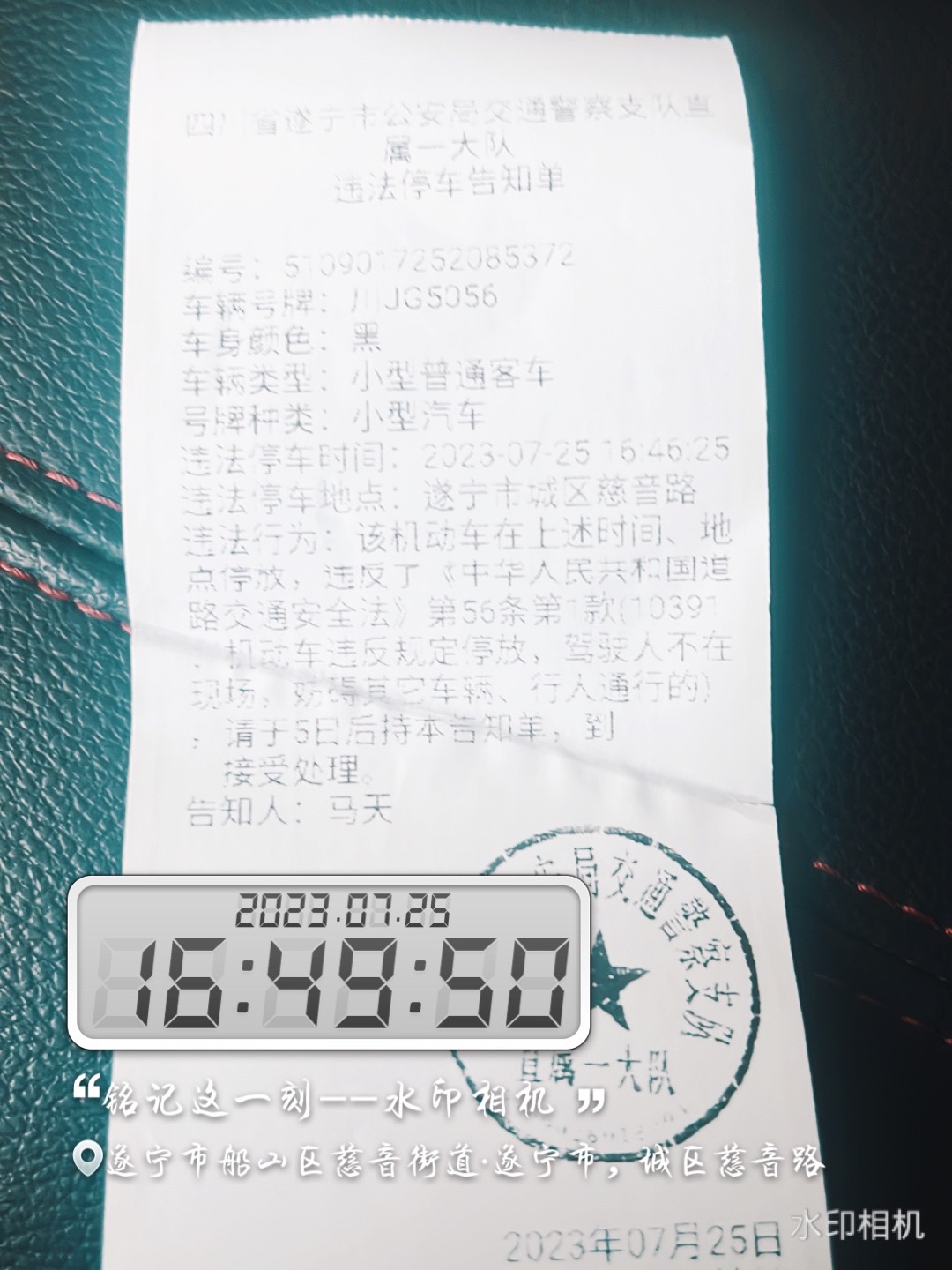 2023年7月25日16时46分收到短信提示驾驶人所驾驶车辆在慈音路未按规定停放提示立即驶离。驾驶人在收到短信提示后三分钟内即将车辆驶离但2023年7月26日还是收到处罚通知短信。对于本次处罚驾驶人认为在接收短信后即将车辆驶离但仍受到罚款处罚且巡逻辅警并未遵守告知在前处罚在后的程序,交警支队向社会公布告知违停短信10分钟内驶离的仅作口头警告且该路段并不属于严管路段,巡逻辅警的行为明显是为了罚款而罚款。