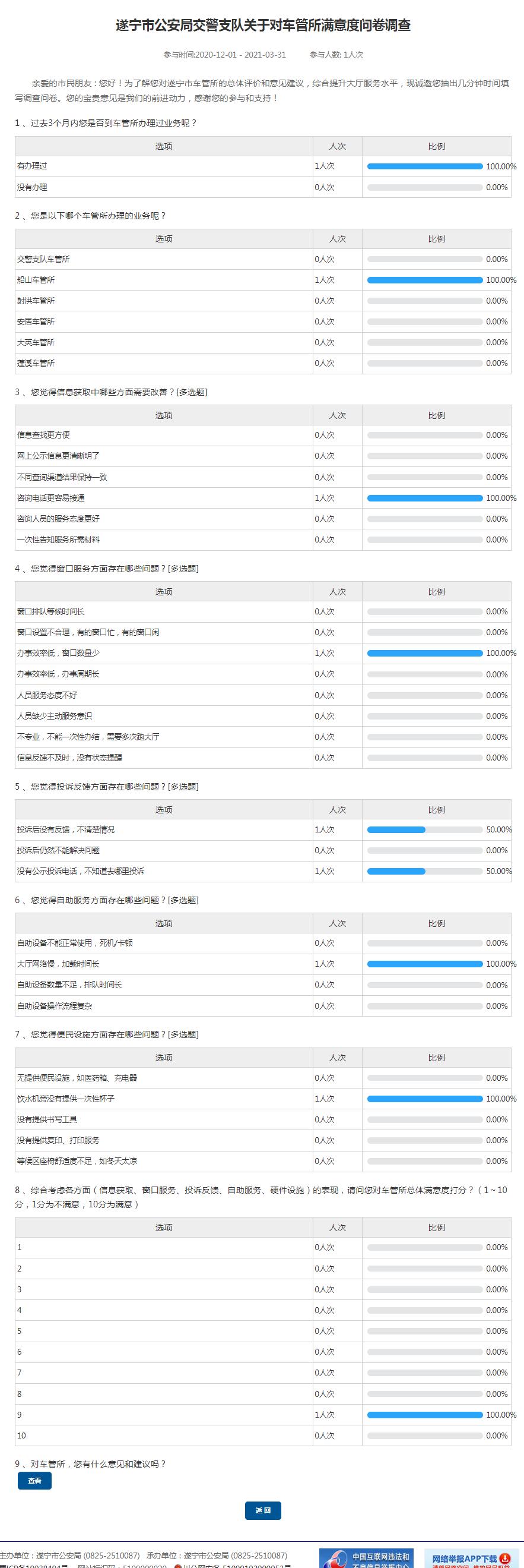 遂宁市公安局交警支队关于对车管所满意度问卷调查