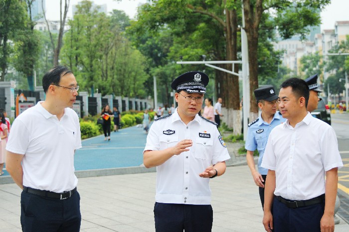 7月6日,副市长、市公安局局长杨林先后到河东新区紫竹路小学、河东实验小学督导检查校园安保工作,实地查看校园安保制度建设、“三防”建设以及校园周边秩序等情况,现场检查河东分局高峰护学勤务工作落实情况。