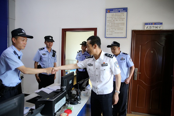 徐承副市长一行来到玉峰派出所,在听取了该所主要负责人关于全市公安机关基层基础工作会议贯彻落实情况后,深入所内通过实地查阅资料、听取汇报方式,详细了解该所基本情况以及接警量、发案率、重点行业场所管理、社区警务、安全防范等工作情况,重点听取了“一标三实”基础信息采集、“Y”库建设和落实派出所民警“一人一房”工作情况汇报,详细询问了解了农村天网工程、雪亮工程资源整合情况。调研中,徐承副市长强调,一是夯实基础工作。要紧盯群众反映最强烈的社会治安突出问题,强化巡逻防控,治安管控,全力维护辖区治安大局稳定。要加强“一标三实”基础信息采集、“Y”库建设等基础工作,严密安全风险防控,强化农村矛盾纠纷排查化解,促进人民内部和谐。二是狠抓队伍建设。县局党委要统筹警力资源,优化警力配置,充实基层警力。同时,所内干部班子要严格队伍管理,在带头抓党建、带队伍、抓业务上走向前列、作表率、起示范,在攻克难点、解决问题上下功夫、出实招,不断推进派出所正规化建设,全面提升基层公安战斗力。三是严格内务管理。基层派出所是公安机关最前沿的形象展示,要强化内务管理,规范办公环境秩序,不留卫生盲区死角,确保所内整洁有序。民警要保持警容严整,充分展示基层公安民警良好形象。