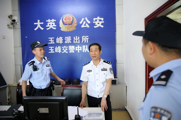 5月16日下午,副市长、市公安局局长徐承深入大英县公安局玉峰派出所调研督导基层基础工作。市局党委委员、机关党委书记申长兴,大英县公安局主要负责人陪同调研。