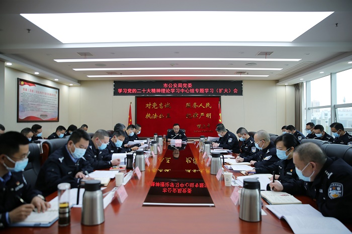 11月29日,市公安局党委召开理论学习中心组学习(扩大)会,专题学习研讨党的二十大精神。副市长、市公安局党委书记、局长杨林主持会议并讲话。