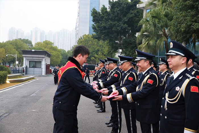 市局在家局领导及市局老领导、各部门双正职及民警代表共计200余人参加仪式。