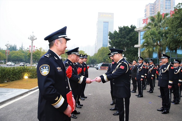 在荣誉授予仪式中,市局党委委员、政治部主任聂洪宣读了有关表彰命令和授予警监警衔命令,与会局领导为授奖集体代表和个人颁奖。
