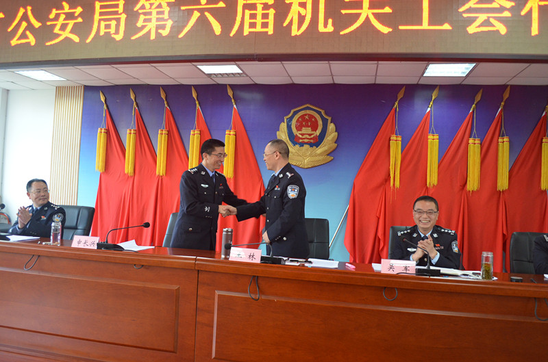 11月30日上午,市局隆重举行第六届工会代表大会。市局党委委员、政治部主任王林,驻局纪检组组长、市局党委委员吴军,市局党委委员、机关党委书记申长兴出席会议,市公安局第五届工会委员、新一届工会委员候选人和各工会小组会员代表参加会议。