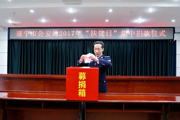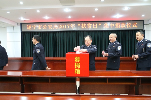 10月17日是全国第四个扶贫日,在市委市政府的倡导下,10月16日上午,市局举行“扶贫日”捐款仪式。副市长、市公安局局长徐承,市局在家局领导,经开、河东分局及市局各部门主要负责人参加了捐款仪式。