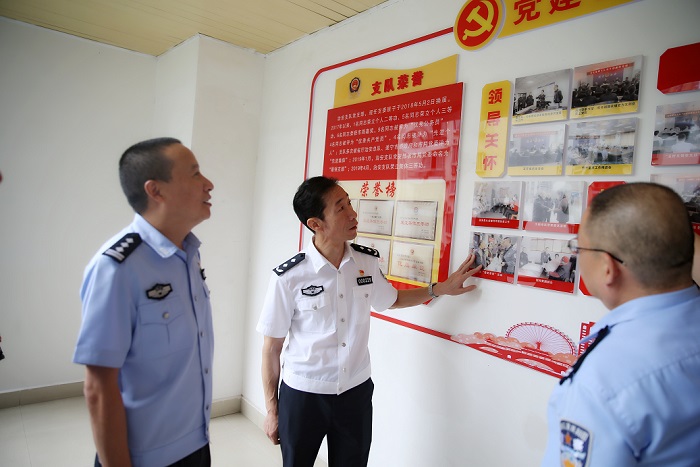 调研中,徐承同志认真听取了治安支队党支部党建工作情况汇报,详细了解了党建文化长廊区域划分、版块设置和阵地建设,对做好党建工作作出调度安排。 他要求,一是全体党员民警要深入学习中、省、市公安工作会议精神,切实把党的领导落实到公安工作和队伍建设的各方面全过程,始终确保公安工作坚定正确的政治方向,永葆绝对忠诚、绝对纯洁、绝对可靠的政治本色。 二是要进一步提升对新时代公安党建工作重要性的认识,强化党建引领,聚焦深度融合,引导各级党组织和广大党员民警在服务公安工作大局中找准政治站位,在聚焦公安主业中把握职能定位,着力打造遂宁公安党建品牌。 三是要科学规划,精心设计,加快支部党建文化长廊建设,完善软硬件设施,使之成为综合性、实用性、代表性的公安党建阵地,为提升公安党建工作科学化、规范化水平提供有力支撑。