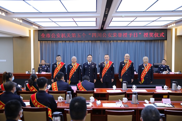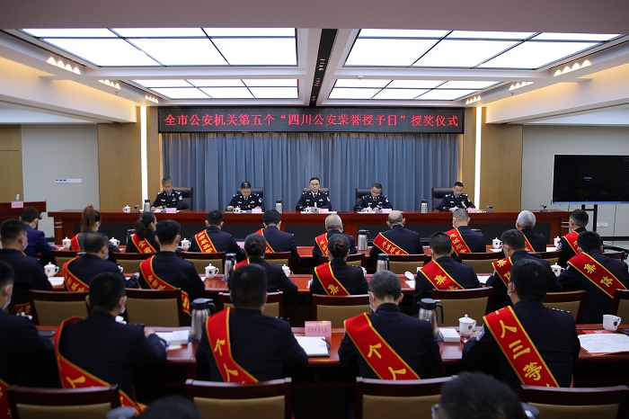 仪式由驻局纪检监察组组长、党委委员吴军主持。市局各部门主要负责同志以及部分民警代表参加仪式。各县(市、区)公安(分)局比照市局,同步举行授奖仪式。