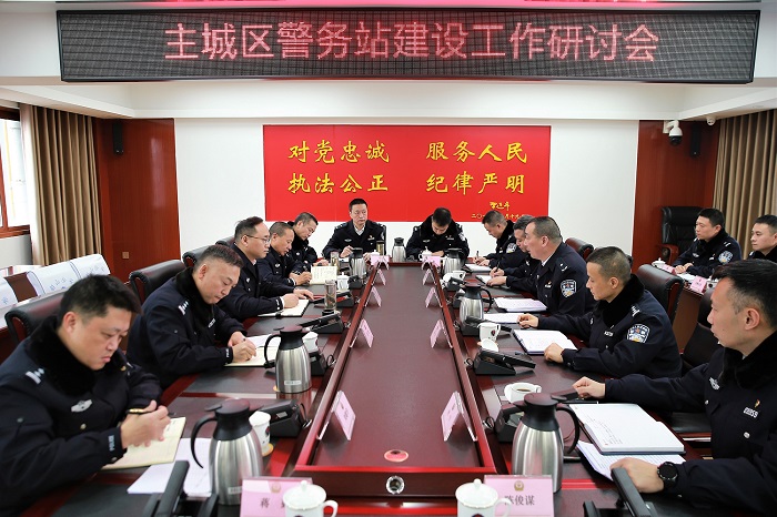 在主城区警务站建设工作研讨会上,杨林听取了警务站建设谋划思路、具体措施、“三融六联”工作机制以及存在的问题困难和下步工作打算的汇报,市区相关警种部门就警务站建设作了研讨发言,提出意见建议。