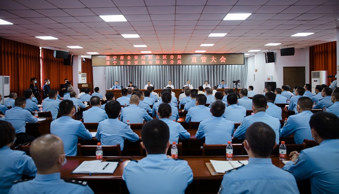 9月10日,市局召开遂宁市公安局船山区分局、遂宁市公安局安居区分局直管大会。市委常委、政法委书记刘波涛,副市长、市公安局党委书记、局长杨林出席会议并讲话。会议由市公安局党委副书记、常务副局长陈麒巍主持。