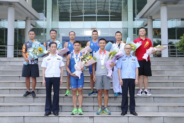 在欢迎仪式上,徐承副市长与每名运动员们握手并为他们送上鲜花,市局党委委员、政治部主任王林宣读了向取得奖牌的4名运动员进行战时表彰的决定。受市委书记邵革军委托,徐承副市长向运动员们转达了邵书记问候:你们为国家争了光,为遂宁争了光,向你们表示慰问,向你们表示祝贺!