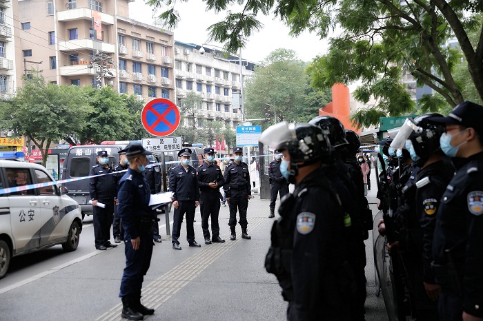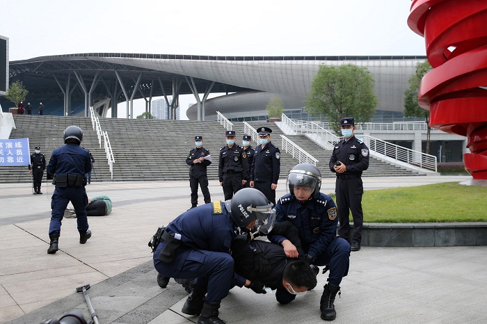 在船山区遂宁中学和河东新区市体育中心外,测试组通过模拟现场因纠纷发生刀斧砍杀警情,在110接警平台下达处置指令后,分别对船山区分局、河东分局的响应速度、到达时间、模拟警情处置等环节进行了实战测试,警务实战教官团对测试中发现的问题一一指正,并进行了现场教学和示范演示。