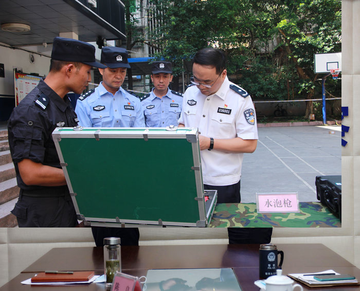 杨林详细查看了特巡警支队非线性节点探测仪、频率干扰仪、水泡枪、液体分析仪等装备配备情况,现场观摩了特巡警支队涉爆警情处置演练。