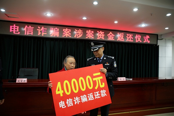 会上进行了电信诈骗涉案资金返还仪式,市人民银行、银监局、法院、检察院、公安局、通发办等成员单位负责人分别作了发言。