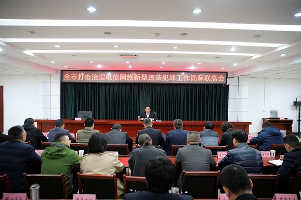 为贯彻落实全国、全省打击治理电信网络新型违法犯罪工作电视电话会议精神,12月6日,我市召开全市打击治理电信网络新型违法犯罪工作局际联席会议。副市长、市公安局局长、局际联席会议召集人徐承出席会议并讲话。市打击治理电信网络新型违法犯罪工作局际联席会议成员单位负责人及联络员参加会议。