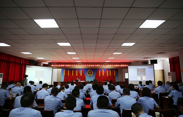 为深入传达学习习近平总书记在纪念五四运动100周年大会上的重要讲话精神,激励全市广大青年民警勇立时代潮头,奋发担当作为,5月15日,市公安局召开学习贯彻习近平总书记在纪念五四运动100周年大会上的重要讲话精神主题报告会。副市长、市公安局局长徐承,共青团遂宁市委书记刘红军,共青团遂宁市委办公室主任杨桓,市局在家局领导出席会议。
