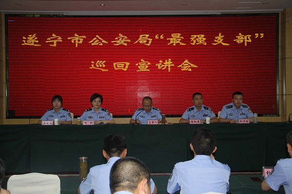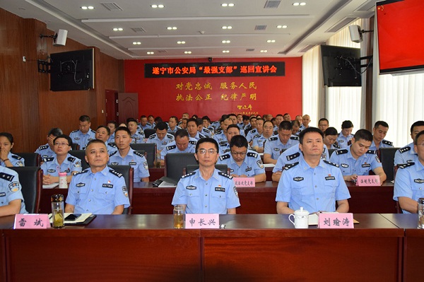 为全面贯彻落实新时代党的建设总要求,不断激发全市公安机关各级党组织、党员民警新担当新作为,进一步发挥“最强支部”示范引领作用,根据市局党委办公室《关于做好2019年度“最强支部”推树工作的通知》精神,6月10日至16日,市公安局分别在船山、安居、射洪、蓬溪、大英和市局机关组织开展了六场“最强支部”宣讲活动。