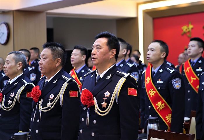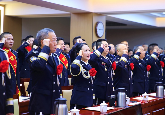 杨林指出,2023年,是极不平凡、极为重要的一年。这一年,最鼓舞人心的是习近平总书记时隔一年多时间,再次亲临四川视察指导,为我们做好新征程各项工作指明了前进方向、提供了根本遵循。这一年,最温暖人心的是习近平总书记在国家第10个烈士纪念日到来之际,专门给中国人民公安大学在读英烈子女回信,对人民警察的神圣职责作出深刻阐述,对公安英烈的崇高精神给予高度赞扬,为我们奋力推进公安工作现代化、实现公安工作高质量发展提供了不竭动力和力量源泉。这一年,最振奋人心的是遂宁公安坚定贯彻党的二十大精神,围绕遂宁“成渝之星”建设发展大局,聚焦成都大运会安保主线,以年度十件实事为核心,全面做强主责主业,着力深化公安改革,不断夯实基层基础,有力维护了全市社会大局稳定,各项工作取得了新发展新进步,涌现出了一大批先进集体和个人。