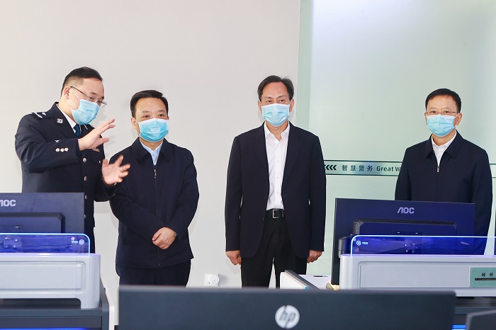 靳磊强调,要将学习贯彻党的二十大精神与统筹做好当前政法重点工作结合起来,坚定用党的二十大精神武装头脑、指导实践、推动工作,确保党的二十大精神不折不扣落地见效。要统筹发展和安全,坚持和发扬新时代“枫桥经验”,严格落实社会稳定风险评估制度,抓早抓小矛盾纠纷排查化解,完善立体化信息化治安防控体系,加强数据资源整合和运用,以科技力量助力平安建设提质增效。要探索健全基层社会治理制度,完善网格化管理、精细化服务、信息化支撑的基层治理平台,拓宽基层群众有序参与社会治理渠道,打造共建共治共享的基层社会治理格局。要持续优化法治化营商环境,主动延伸执法司法服务链条,完善法治稳企护企帮企措施,全力护航经济社会高质量发展,为拼经济搞建设贡献更多政法力量。
