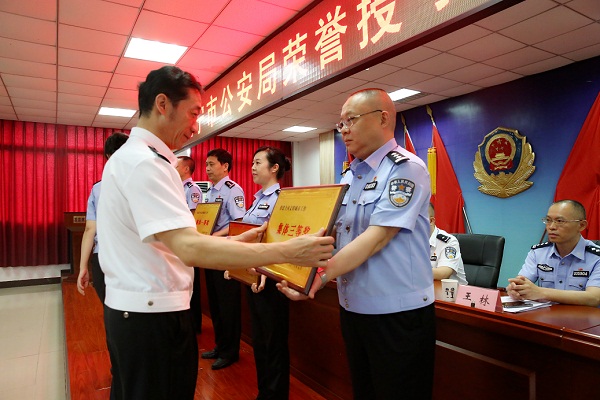 荣誉授予仪式上,市局党委委员、政治部主任王林同志宣读了表彰决定和命令;徐承局长为获奖集体代表和先进个人进行了颁奖;获奖民警代表及民警家属代表分别作了发言。