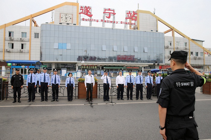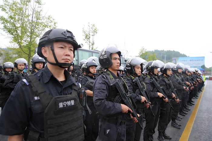 市局特警支队、交警支队、刑警支队警犬大队,以及主城区分局特警大队、火车站派出所等部门240人参加应急拉练,全面展示了警用摩托车、防暴特警、警犬搜爆等快反应急力量。