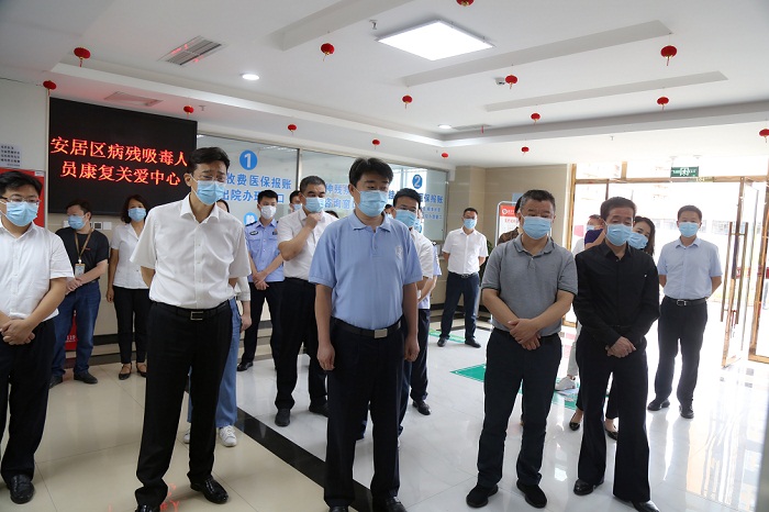 赵仲忱一行先后深入安居区和谐广场、安居区三家镇、东禅镇社戒社康工作站,安居区病残吸毒人员康复关爱中心以及安居区思源实验学校,参观指导安居区禁毒重点整治成果展,实地检查验收社戒社康运行、重点人员管控、病残吸毒人员收治以及青少年毒品预防教育等工作情况,并出席了安居区迎接国家级重点整治地区评估验收工作汇报会。