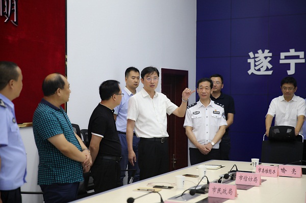9月24日(中秋节),市委书记邵革军一行深入市公安局看望慰问节日期间坚守岗位的公安民警。邵书记一行先后深入指挥中心、网安、技侦等部门,与民警亲切交谈,详细了解公安机关维护政治安全和社会稳定、治安管控、服务群众、侦查办案、公共安全、接报警情和指挥调度等工作情况。邵革军书记充分肯定了全市公安机关所取得的工作成效。对节日期间坚守岗位的广大公安民警致以节日的问候和祝福!他指出,全市公安机关要始终把加强队伍建设摆在突出位置,进一步提升快速反应能力和处警巡逻防控能力,更好地服务人民群众。要加强“天网”和“地网”建设,提高社会治安管控能力,深化扫黑除恶专项斗争,让社会更加稳定平安,让百姓更加安居乐业。