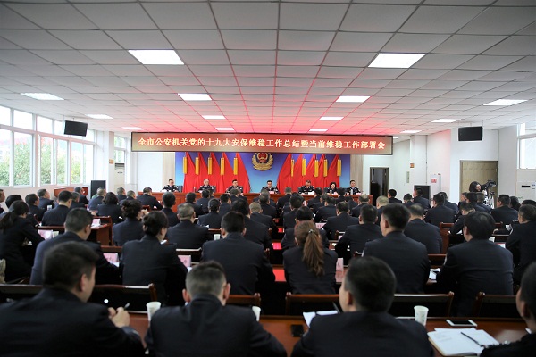 徐承局长指出,召开本次会议目的是总结党的十九大安保工作,分析评估当前工作形势,部署下阶段工作。他强调,一是总结经验、肯定成绩,继续保持良好工作状态。安保工作以来,全市公安机关将党的十九大安保工作作为压倒一切的首要政治任务,全力以赴落实各项安保措施,确保了社会政治稳定和治安大局平稳,全市公安机关要再鼓干劲、再添措施,一鼓作气、一往无前,继续保持良好的工作状态。二是找准问题、认清差距,科学评估当前严峻形势。全市公安机关虽然在总体上顺利完成了党的十九大安保任务,但仍存在着警种工作摆布失衡、细节不精、基础不实、应对不力等问题,要深刻认识国家安全领域的现实威胁、维护稳定领域的严峻挑战、社会治安领域的巨大压力、公共安全领域的隐患漏洞,认真分析、科学研判,保持高度警惕、做好万全准备。三是锁定目标、克难攻坚,坚决确保年末大局稳定。要牢固树立“漏一等于漏万、一失等于万无”的工作理念,加强维稳攻坚,坚持打防结合,强化安全监管,严管队伍管理,进一步细化举措、夯实基础,全警发力、全力以赴,坚决抓好年末各项工作,确保大局稳定。