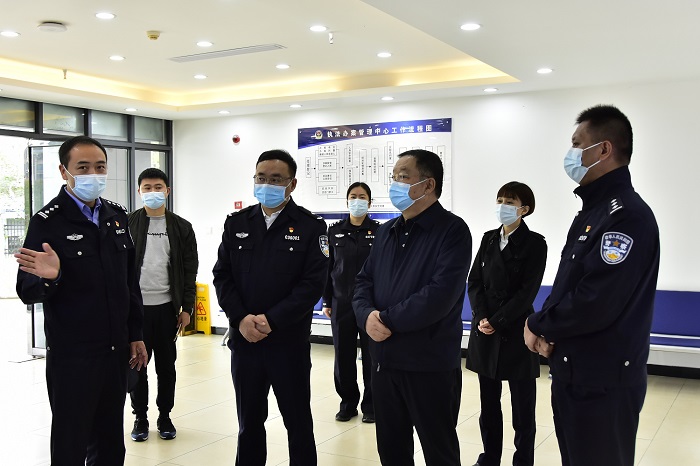 段宝新副厅长一行先后深入大英县公安局执法办案管理中心、蓬溪县公安局警体馆及赤城派出所,市城区滨江路交警查缉卡口、市公安局智慧警务中心、情指中心、党的二十大遂宁安保维稳工作专班,实地督导调研风险隐患排查化解、执勤卡点查缉、大数据支撑实战等党的二十大安保维稳工作情况。