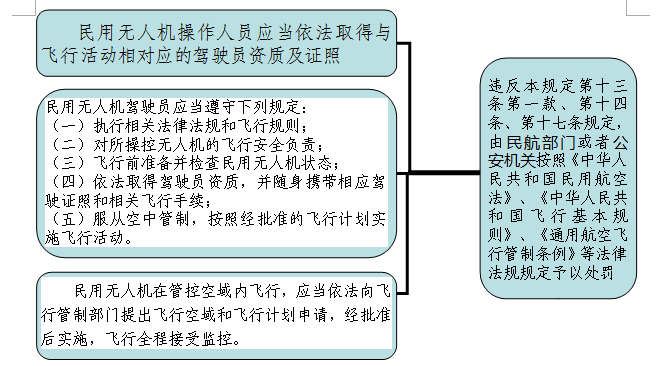 第十三条 民用无人机操作人员应当依法取得与飞行活动相对应的驾驶员资质及证照。